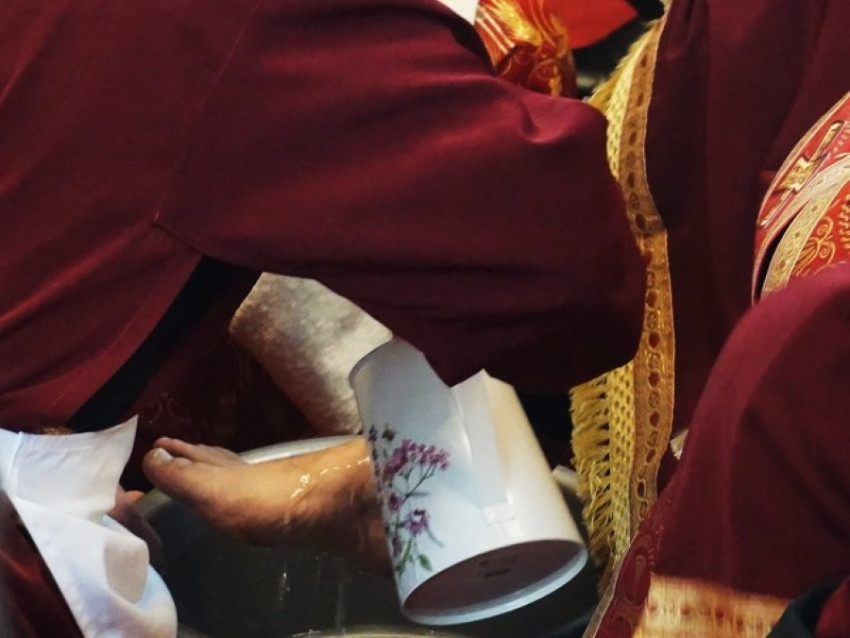 A homíliát követően a liturgiában felidézték és megjelenítették Jézus példáját, aki megmosta tizenkét tanítványának lábát.