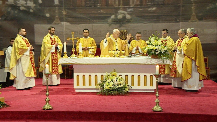 A főpásztor beszédében arról elmélkedett, hogy az Eucharisztiában Jézus valóságosan velünk maradt, erőnk forrásává, lelkünk táplálékává vált. Az Oltáriszentség azonban nincs papok nélkül, akik Jézus nagycsütörtöki kegyelmi ajándékai nyomán a helyes Isten- és emberszeretetet közvetítik nekünk.