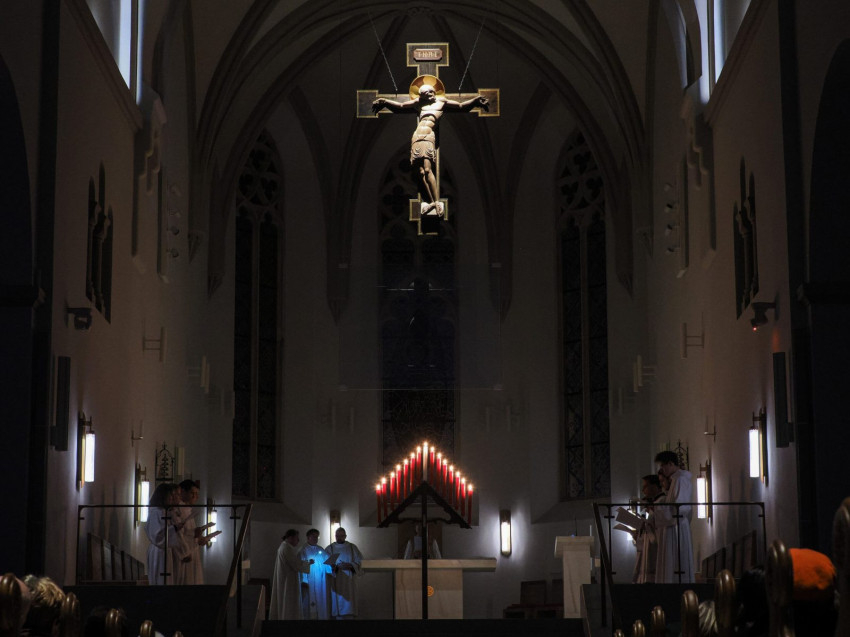 A nagycsütörtök esti liturgiában az utolsó vacsora felidézésével az Eucharisztia alapítására emlékezünk, amikor Jézus maga köré gyűjtötte tanítványait. A szentírási olvasmányok felidézik az egyiptomi kivonulás éjszakáját, amikor az angyal megkímélte az izraeliták házait, mert a bárány vérével megjelölték az ajtófélfákat. A húsvéti lakoma áldozati báránya Krisztus előképe: saját testét adja értünk, vére pedig megszabadít a bűntől, az örök haláltól. Ternyák Csaba egri érsek az egri bazilikában mutatott be szentmisét nagycsütörtökön este.