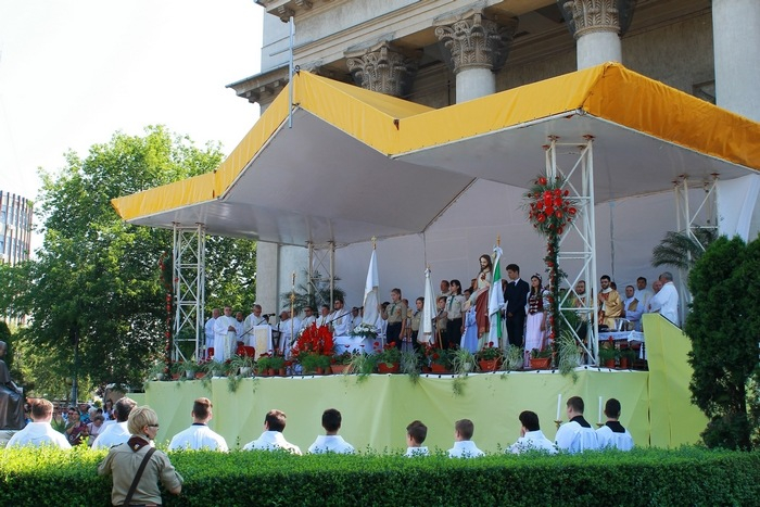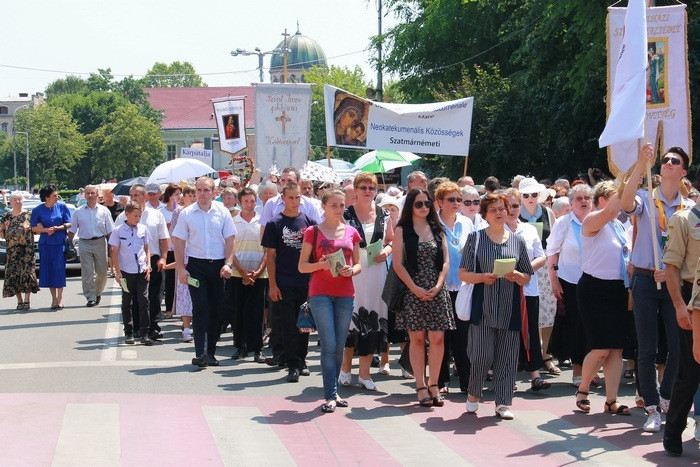 Sok ezren vettek részt a Szatmári Római Katolikus Egyházmegye búcsúünnepén, melyet a hagyományokhoz híven idén is a város főterén, a székesegyház előtt felállított szabadtéri oltárnál ünnepeltek. Az egyházmegye hívein kívül idén kárpátaljai és magyarországi zarándokok is érkeztek a búcsúra Szatmárnémetibe. A szentmise főcelebránsa Schönberger Jenő szatmári püspök, a szónok pedig Forrai Tamás, a Jézus Társasága Magyarországi Rendtartományának provinciálisa volt.