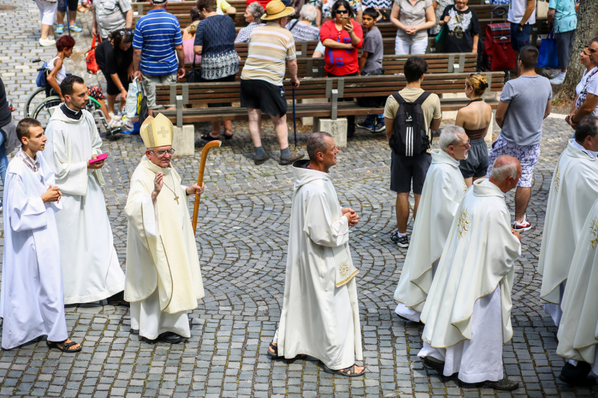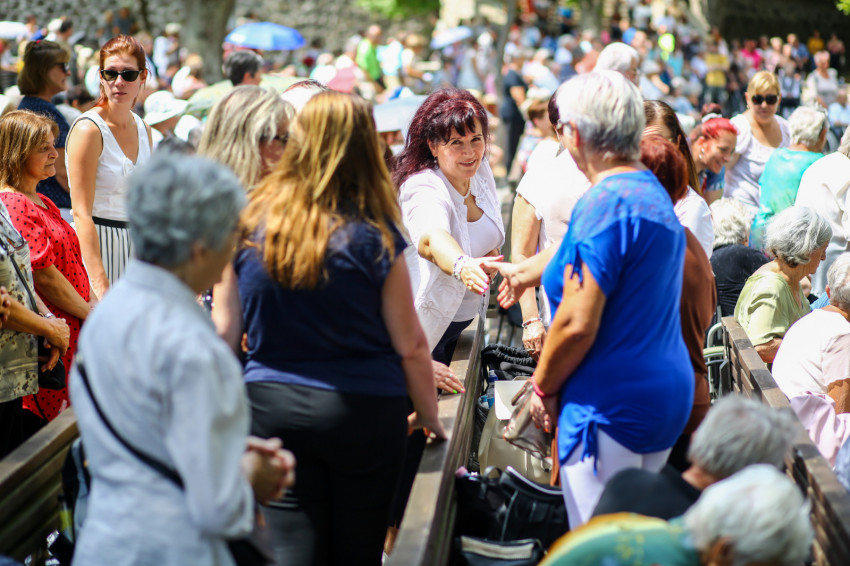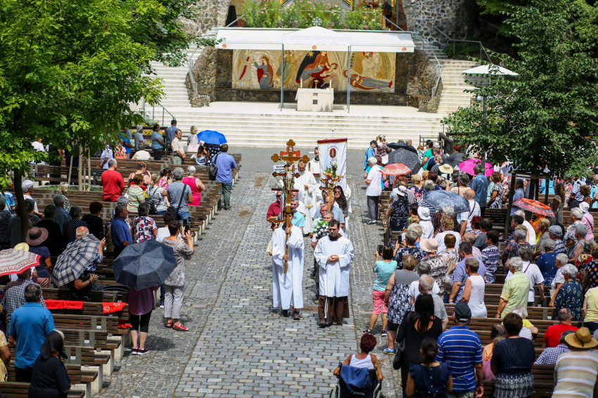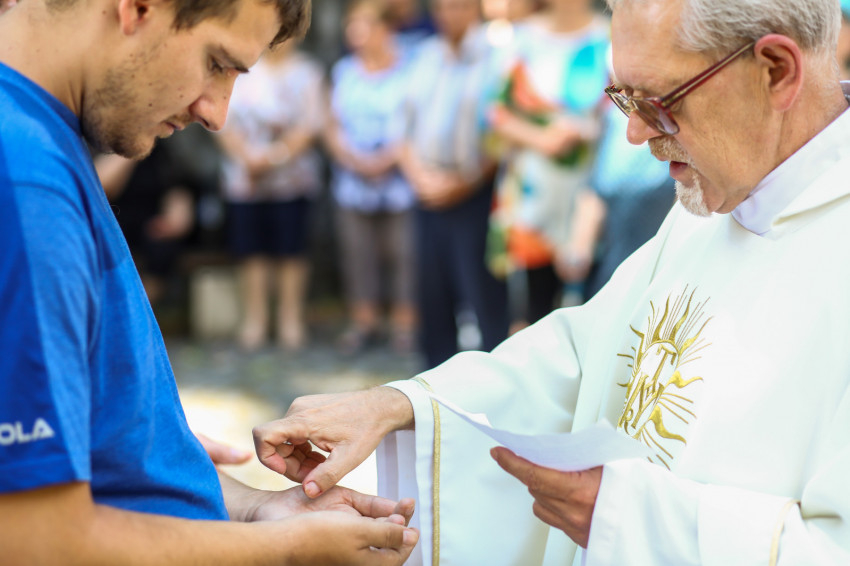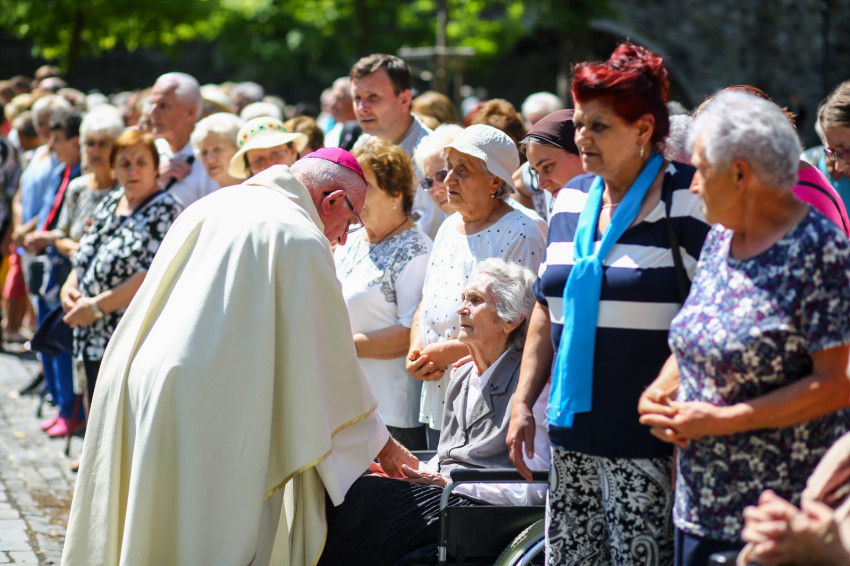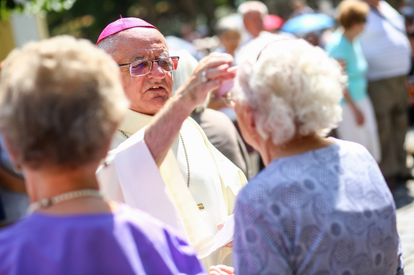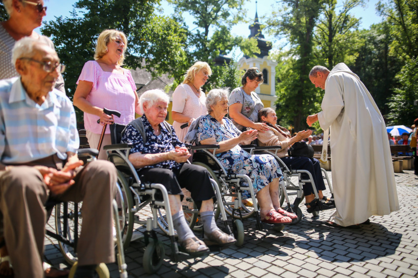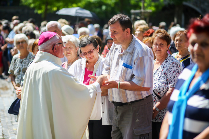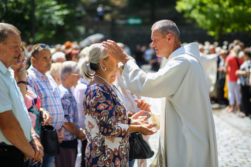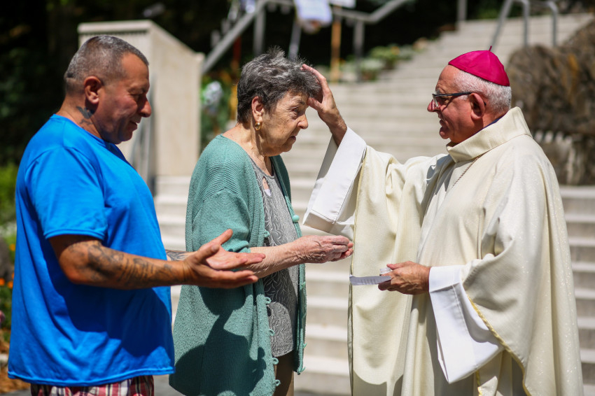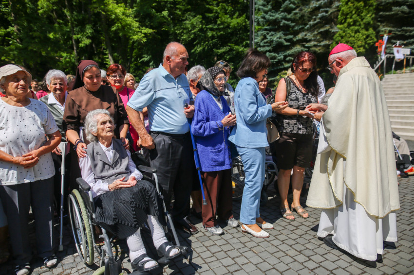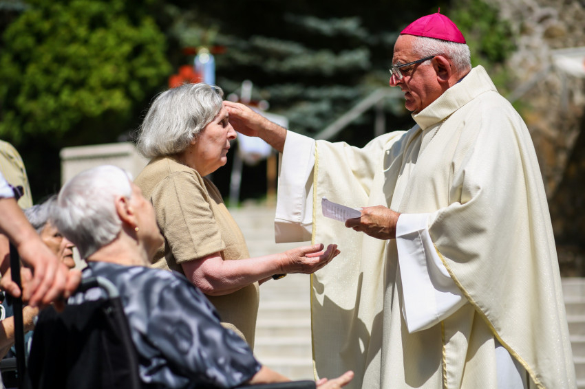 A szentmisén a főpásztor és a vele koncelebráló papok, szerzetesek feladták a zarándokoknak a betegek kenetét.