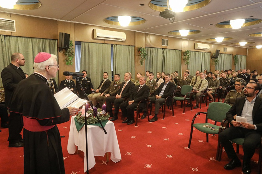 A találkozót követő adventi gyertyagyújtáson Berta Tibor ezredes, a Katolikus Tábori Püspökség általános helynöke a megjelenteket köszöntve hangsúlyozta: a mai áhítaton elhangzó bibliai szakasz mindig megerősítés a hadseregben szolgálóknak, hogy a becsülettel ellátott szolgálatuk nagy támasza és biztosítéka az emberiség békéjének. A helynök csendes, munkával teli ünnepi készületet kívánt.