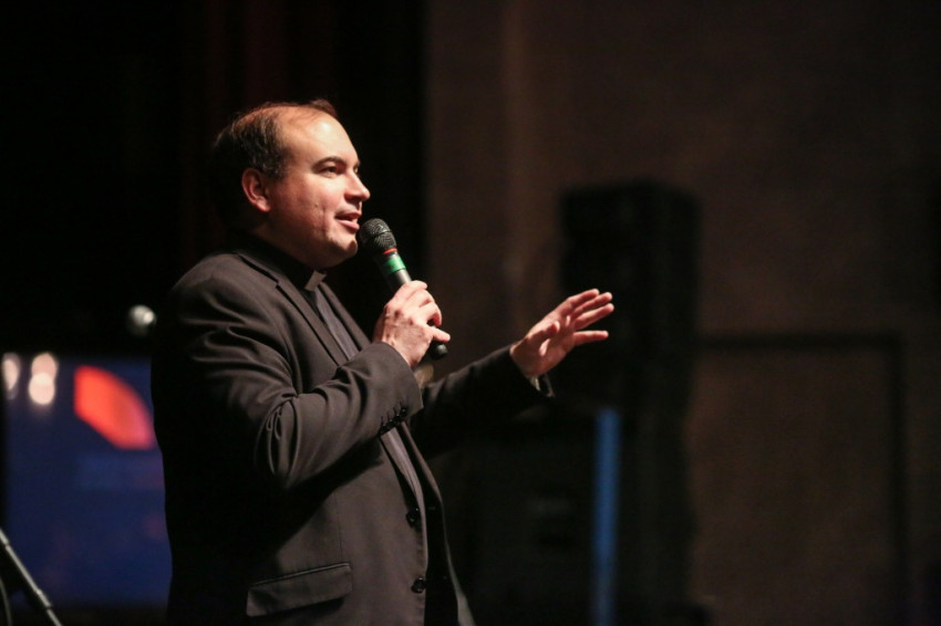 Monostori László, a Lehel téri Árpád-házi Szent Margit-templom helyettes plébánosa is köszöntötte a koncertre érkezőket. Megköszönte a kerület polgármesterének, munkatársainak segítségét. Szólt arról is, hogy húsvét nyolcadát követően külön öröm számára, hogy ennyien együtt dicsőíthetik az értünk keresztre feszített, de harmadnapra feltámadt Jézus Krisztust. Mint mondta, a koncert lényege Jézust a középpontba állítani, az ő hangját meghallani, az ő útján járni, az ő akarata szerint folytatni életünket.