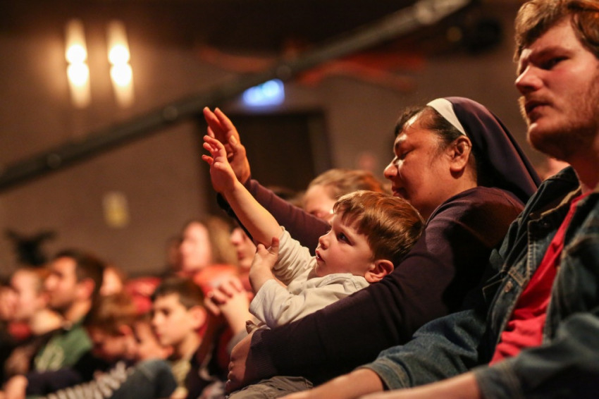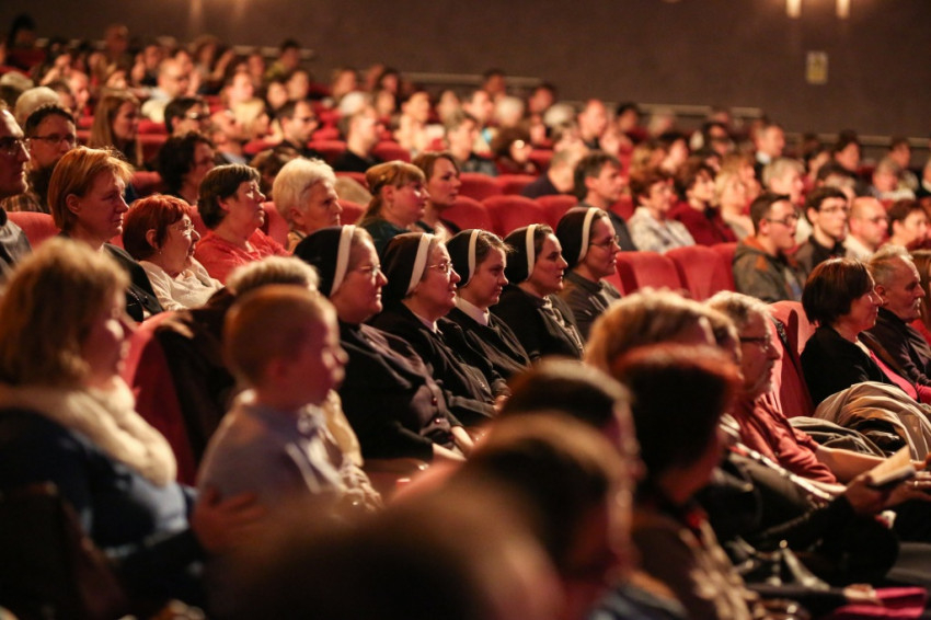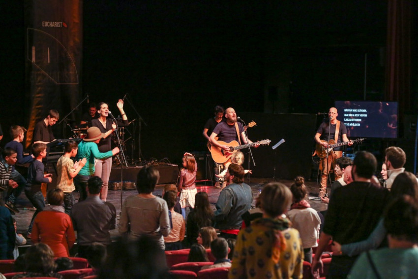 Jézus Krisztus azt mondta a Szentlélekről, hogy élő vizek forrását adja az embereknek. A forrás gondolata az, ami a következő években missziós munkánk során a középpontban fog majd állni – folytatta Erdő Péter bíboros, majd hozzátette: múlt héten kaptuk a Vatikánból azt a jó hírt, hogy Ferenc pápa jóváhagyta a budapesti nemzetközi eucharisztikus kongresszus témáját. Ez egy bibliai idézet, amely így hangzik: „Minden forrásom belőled fakad”. A Szentlélek az, aki az élő vizeket adja, az ő segítségével ismerjük fel az Eucharisztiában Krisztust. Az Oltáriszentségről, úgy is mint ünneplésről, szentmiséről azt vallja az Egyház, hogy csúcs és forrás. Ezért különösen nagy öröm, hogy az Eucharist együttes ennek a titoknak a jegyében játszik ma itt ennyi ember előtt, bevonva őket a dicsőítő imádságba. Fontos, hogy meghalljuk a Szentlélek üzenetét, az ő segítségével készüljünk a világegyházban is nagy jelentőségű kongresszusra – zárta köszöntőjét Erdő Péter bíboros, prímás.