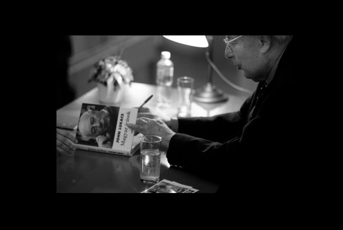 Lukacs önmagát nem is konzervatívnak, hanem „reakciósnak”, a letűnőben lévő polgári kor képviselőjének nevezte, aki a populizmust tartotta a modern demokráciára leselkedő legnagyobb veszélynek. Mint magyarul is megjelent önéletrajzi kötetében, az Egy eredendő bűnös vallomásaiban (2001) írja, a reakcióst az különbözteti meg a konzervatívtól, hogy a megőrzés pártján van ugyan, de nem nacionalista. 2006-ban ugyancsak Egy eredendő bűnös vallomásai címmel riportfilmet forgattak vele Budapesten, amelyben életéről, a történelmi tudatról, Európáról és Amerikáról, az európai civilizáció válságáról, phoenixville-i otthonáról és szülővárosáról, Budapestről beszélt. 2013 májusában Búcsúelőadások címmel két előadást tartott a Pázmány Péter Katolikus Egyetemen és az Eötvös Loránd Tudományegyetem Bölcsészettudományi Karán.