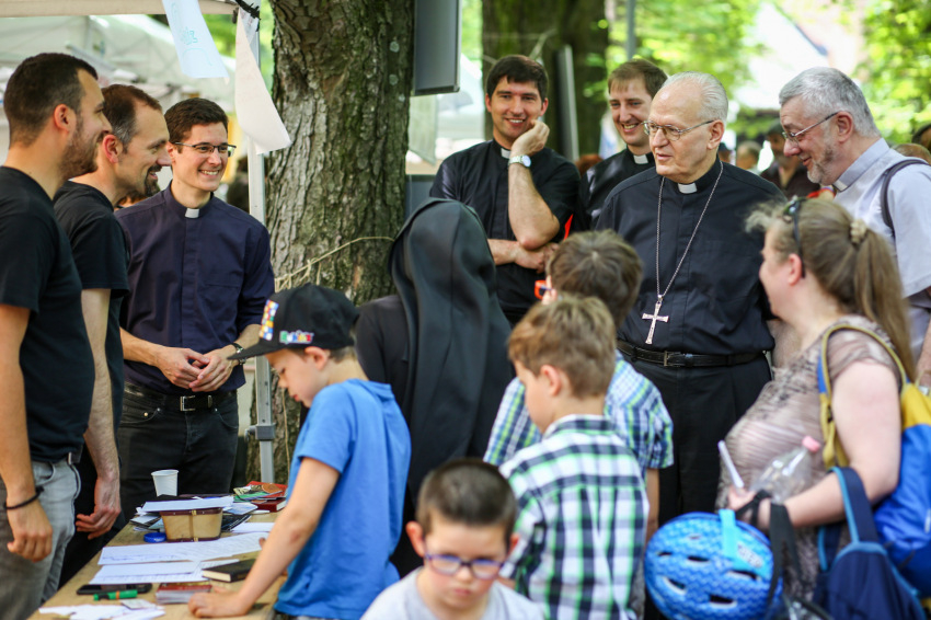 A karizmák ünnepének keretében rendezték meg az egyházmegyei ministránstalálkozót is. A templomkertben a plébániák, lelkiségi mozgalmak és közösségek várták az érdeklődőket. Az Elküldve élményprogram pedig a családokat hívta együttlétre. A Nyolc Boldogság Közösség vezetésével megtartott szentségimádás után Erdő Péter bíboros tartott katekézist. Ebben a misszióról, az eucharisztikus kongresszus következő felkészülési évének témájáról beszélt.