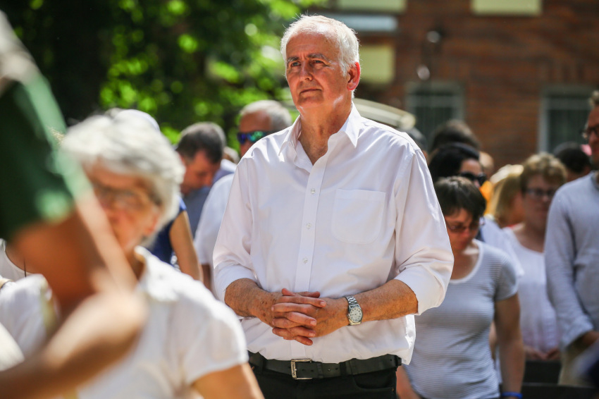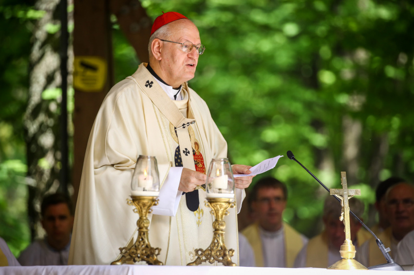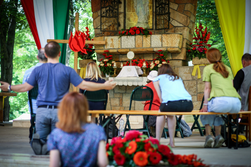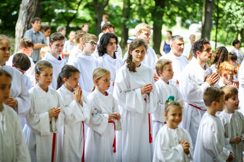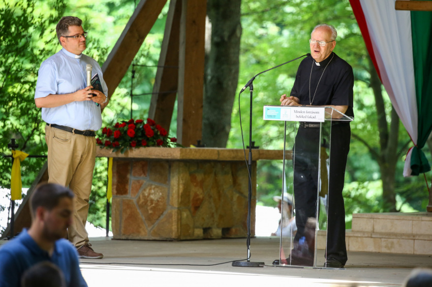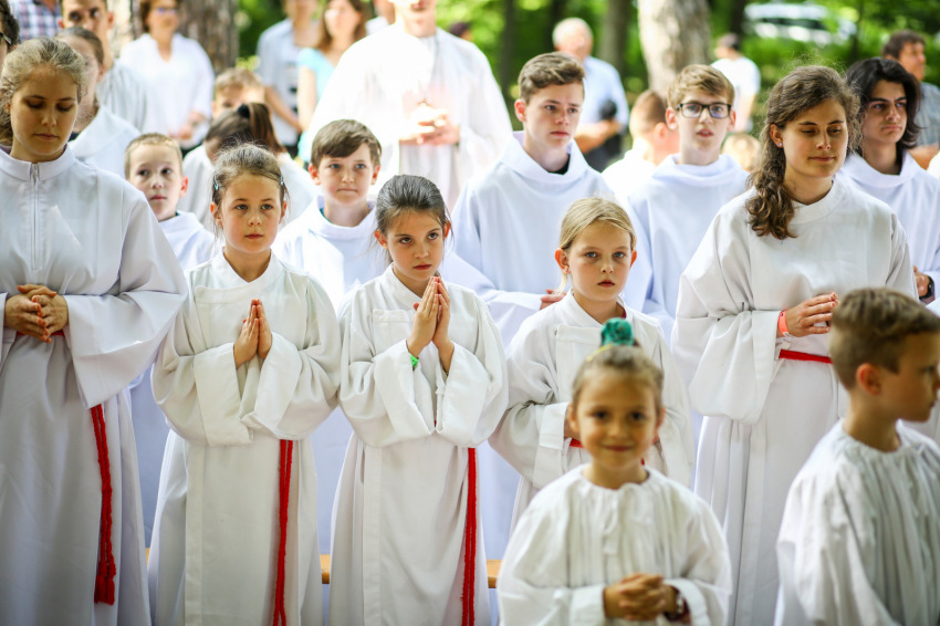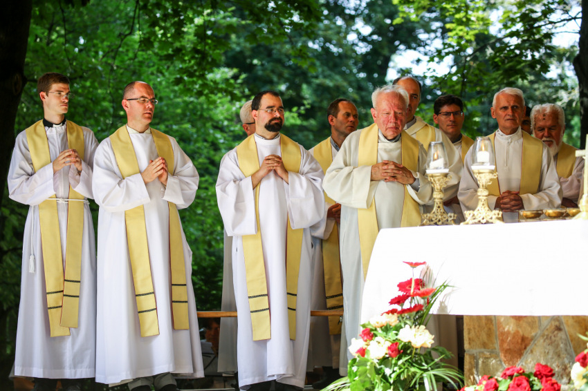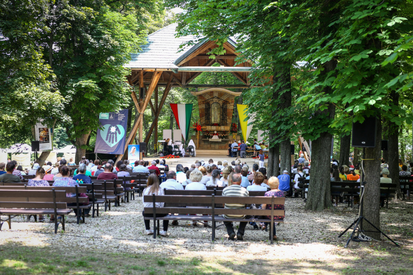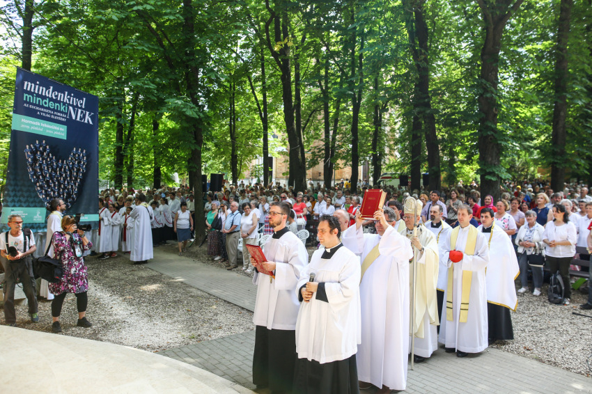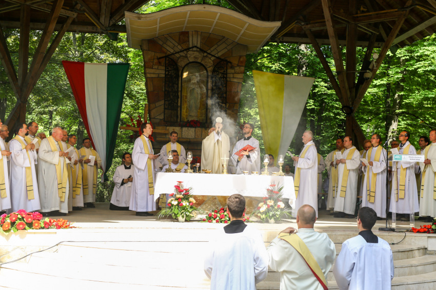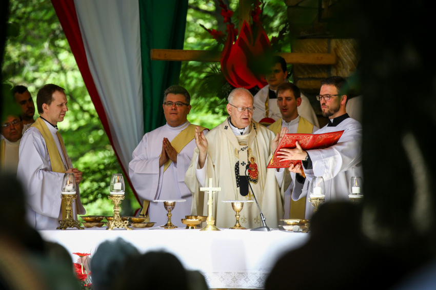 Délután a máriaremetei kegytemplom szabadtéri oltáránál Erdő Péter mutatott be szentmisét az egyházmegye papságával.
