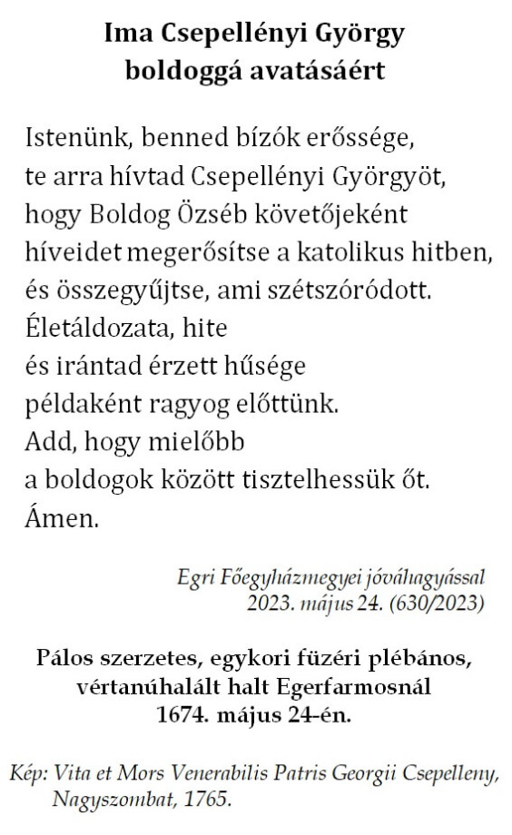 Ternyák Csaba érsek elfogadta és támogatta a Csepellényi György életútja szempontjából fontos települések, így Füzér, Sátoraljaújhely, Egerfarmos polgármestereinek és lelkipásztorainak erre vonatkozó kérését, majd ezt felkarolva az ügyet a Magyar Katolikus Püspöki Konferencia elé vitte, mely nyilatkozatban is támogatta a boldoggá avatás megindítását.