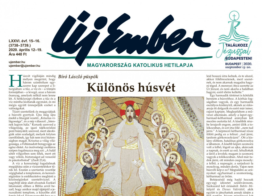 Ünnepi lapunk vezércikkét Bíró László a Magyar Katolikus Püspöki Konferencia családreferense, tábori püspök írta Különös húsvét címmel. A hosszú ideje kórházi körülmények között élő főpásztor közvetlen szavakkal ír az örömről, és többek közt a tűz, a víz és a levegő húsvéti szimbolikájáról. Bíztat mindnyájunkat, hogy „a mostani járványhelyzetben se sodródjunk a világ hangulatával, ne merüljünk el benne, hanem emelkedjünk fölül.”