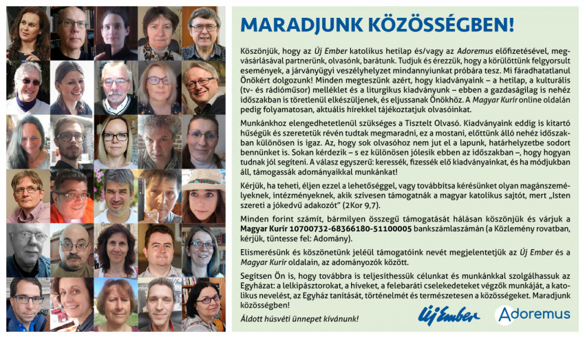 Kiadványaink eddig is kitartó hűségük és szeretetük révén tudtak megmaradni, ez a mostani, előttünk álló nehéz időszakban különösen is igaz. Sokan kérdezik – s ez különösen jólesik ebben az időszakban –, hogy hogyan tudnak jól segíteni. A válasz egyszerű: keressék, fizessék elő kiadványainkat, és ha módjukban áll, támogassák adományaikkal munkánkat!