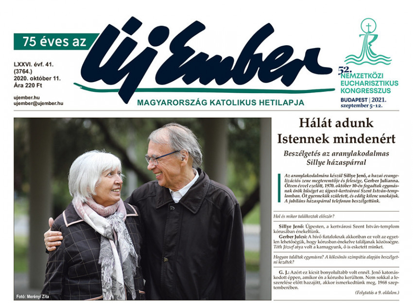 A címoldalon kezdődő vezető cikkünk fotóján az aranylakodalmára készülő Sillye Jenő, a hazai evangelizációs zene megteremtője és felesége, Gerber Julianna látható.