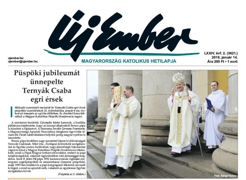 A címlapon beszámolunk arról, hogy hálaadó szentmisét mutatott be Ternyák Csaba egri érsek püspökké szentelésének 25. évfordulóján, január 6-án az egri bazilikában. A főpásztorral koncelebráltak a Magyar Katolikus Püspöki Konferencia tagjai.