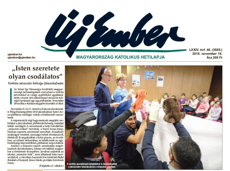 A címoldalon kezdődik riportunk arról, hogy az Isteni Ige Társasága, a verbiták magyarországi tartományának szerzetesei november 8. és 11. között a kalocsa-kecskeméti főegyházmegyei jánoshalmai Szent Anna-plébánia meghívására missziós napokat tartottak a Bács-Kiskun megyei városban.
