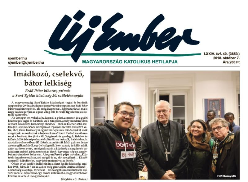Imádkozó, cselekvő, bátor lelkiség címmel a címlapon tudósítást közlünk arról, hogy a magyarországi Sant’Egidio közösség tagjai és barátaik szeptember 29-én a budapest-józsefvárosi templomban Erdő Péter bíborossal együtt ünnepelték az olasz alapítású közösség ötvenedik születésnapját. Aki legyőzte az anorexiát címmel olvashatják interjúnkat Gersei Csenge másodéves pszichológushallgatóval a közösségi médiában végzett missziójáról. Szintén a címoldalon kezdődik tudósításunk arról, hogy Székely János romapasztorációs munkatársak tanúsítványait adta át Esztergomban, és arról is olvashatnak, hogy Veres András győri megyéspüspök tartott előadást a Széchenyi István Egyetemen az Ifjúsági Kereszténydemokrata Szövetség Keresztényként című előadás-sorozatának első alkalmán.