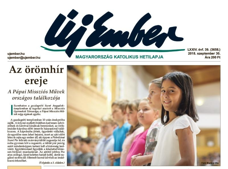 A címlapon tudósítást közlünk a Pápai Missziós Művek országos találkozójáról, mely során a gazdagréti Szent Angyalok-templomban a Missziós Gyermekek Társaságának új tagjait avatták. Interjút olvashatnak Michael August Blume-mal, a Szentszék új magyarországi nagykövetével. Kaszap Istvánra, a fiatalon elhunyt jezsuita novíciusra emlékeztek az Ars Sacra Fesztivál keretében a budapesti Párbeszéd Házában szeptember 17-én. Az esten felidézték a fiatal hitvalló emlékét.
