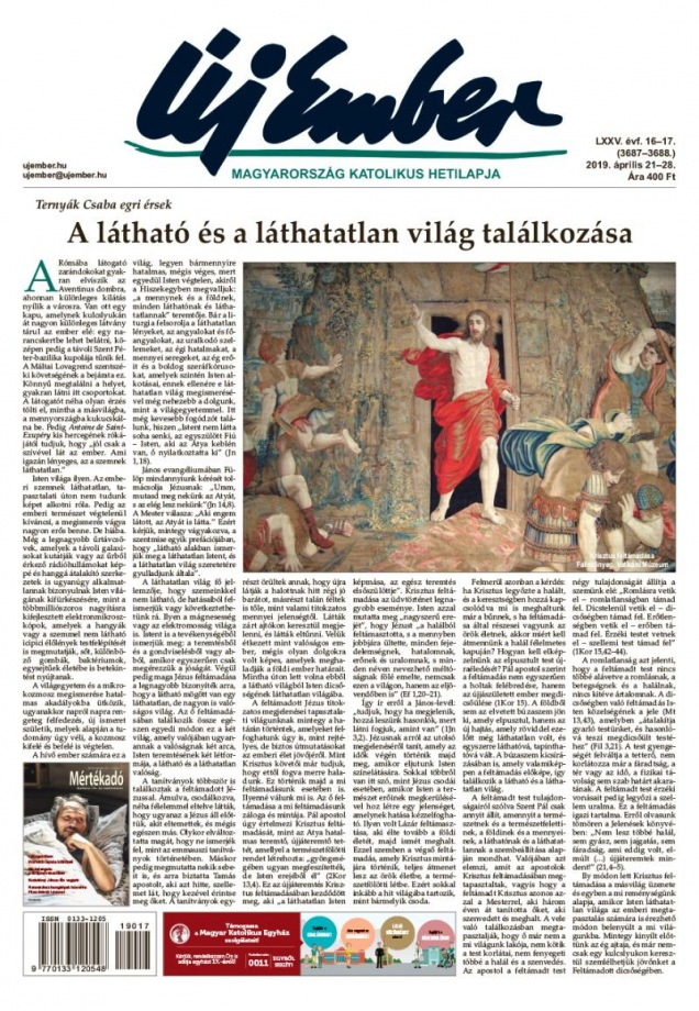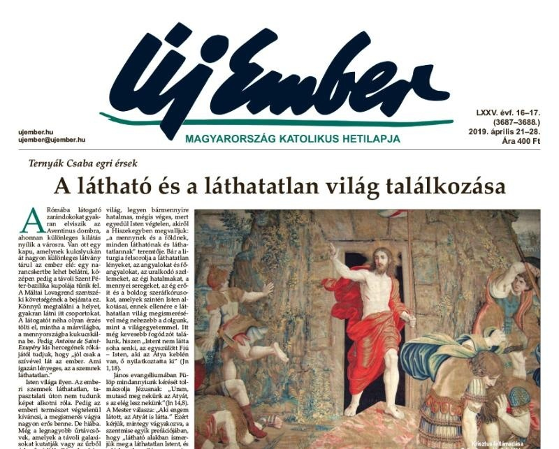 Ternyák Csaba egri érsek A látható és a láthatatlan világ találkozása című vezércikkével kezdődik húsvéti számunk. Krisztus feltámadásának ünnepéhez kapcsolódva Isten világáról elmélkedik a szerző: „Pál apostol szerint a feltámadás nem egyszerűen a holtak felébredése, hanem az újjászületett ember megdicsőülése (1Kor 15). A földből sem az elvetett búzaszem jön ki, amely elpusztul, hanem az új hajtás, amely röviddel ezelőtt még láthatatlan volt, és egyszerre láthatóvá, tapinthatóvá vált. A búzaszem kicsírázásában is, amely valamiképpen a feltámadás előképe, így találkozik a látható és a láthatatlan világ. Krisztus feltámadása a másvilág üzenete és egyben a mi reménységünk alapja, amikor Isten láthatatlan világa az emberi megtapasztalás számára is érezhető módon belenyúlt a mi világunkba. Mintegy kinyílt előttünk az ég ajtaja” – írja Ternyák Csaba.