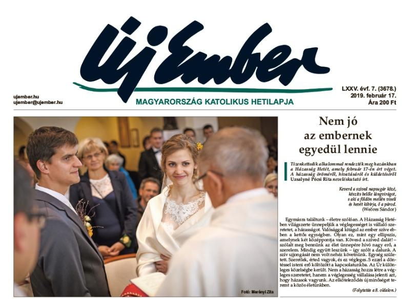 Tizenkettedik alkalommal rendezik meg hazánkban a házasság hetét, amely február 17-én ér véget. Ehhez kapcsolódva a címlapon kezdődik Uzsalyné Pécsi Rita neveléskutató írása a házasság öröméről és küldetéséről Nem jó az embernek egyedül lennie címmel.