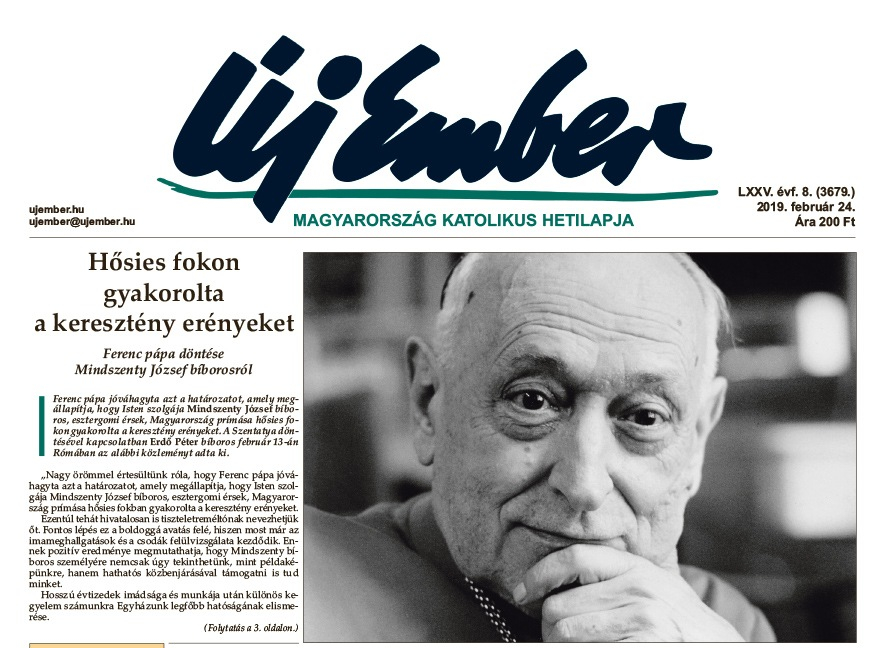 A címlapon közöljük a hírt, hogy Ferenc pápa jóváhagyta azt a határozatot, amely megállapítja, hogy Isten szolgája Mindszenty József bíboros, esztergomi érsek, Magyarország prímása hősies fokon gyakorolta a keresztény erényeket. A Szentatya döntésével kapcsolatban Erdő Péter bíboros, prímás közleményt adott ki, és Székely János szombathelyi püspök is nyilatkozatban üdvözölte a jóváhagyást, méltatva Mindszenty bíboros erényeit. A döntéssel kapcsolatban a következő lapszámunkban interjút olvashatnak Erdő Péter bíborossal. Beszámolunk a Mindszenty-per hetven év távlatából – Főpapi sorsok Kelet-Közép-Európában címmel a Parlamentben megrendezett kétnapos szakmai konferenciáról is.