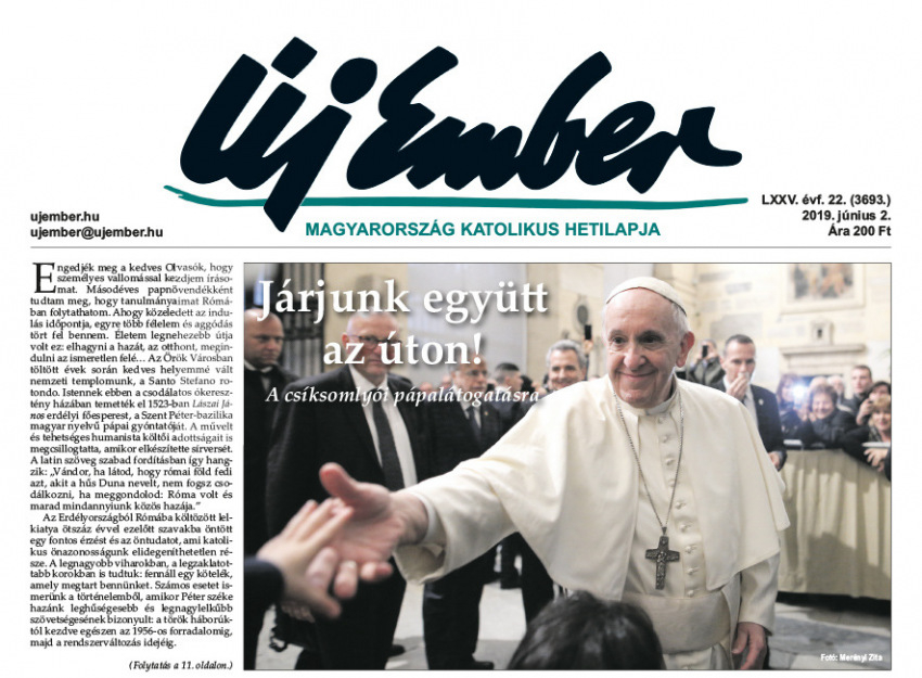 A címlapon kezdődik Török Csaba teológus, egyetemi tanár, az Magyar Katolikus Püspöki Konferencia televíziós referense írása Ferenc pápa június 1-jei csíksomlyói látogatásáról Járjunk együtt az úton! címmel. Jegyzetében Jézust idézi: „Nem jut be mindenki a mennyek országába, aki mondja nekem: Uram, Uram! Csak az, aki teljesíti mennyei Atyám akaratát” (Mt 7,21). Majd így folytatja: „A pápai hivatal megköveteli, hogy viselője folytonosan emlékeztessen bennünket erre. Zavaró? Igen, az. Változtatnunk kell? Bizony, és nem csak felszínesen. »Újuljatok meg gondolkodástok szellemében, s öltsétek magatokra az új embert, aki az Isten szerint igazságosságban és az igazság szentségében alkotott teremtmény. Hagyjátok el tehát a hazudozást, beszéljen mindenki őszintén embertársával, hiszen tagjai vagyunk egymásnak. Ha elfog is benneteket az indulat, ne vétkezzetek. A nap ne nyugodjék le haragotok fölött. Ne adjatok teret az ördögnek« (Ef 4,23–28). Ez a »házszabály» van kiírva az Atya hajlékára.”