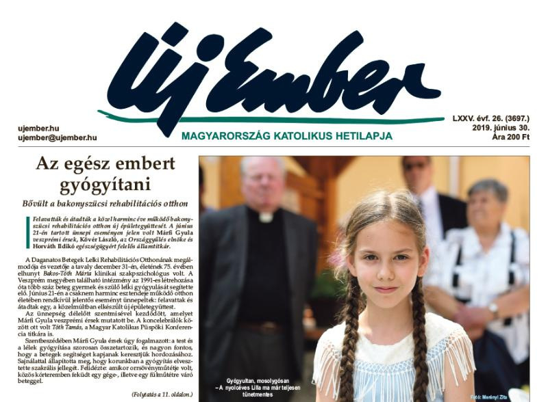 A címoldalon kezdődik tudósításunk arról, hogy felavatták és átadták a közel harminc éve működő bakonyszücsi rehabilitációs otthon új épületegyüttesét. A június 21-én tartott ünnepi eseményen jelen volt Márfi Gyula veszprémi érsek; Kövér László, az Országgyűlés elnöke és Horváth Ildikó egészségügyért felelős államtitkár. A Daganatos Betegek Lelki Rehabilitációs Otthonának megálmodója és vezetője a tavaly december 31-én, életének 75. évében elhunyt Bakos-Tóth Márta klinikai szakpszichológus volt. A Veszprém megyében található intézmény 1991-es létrehozása óta több száz beteg gyermek és szülő lelki gyógyulását segítette elő.