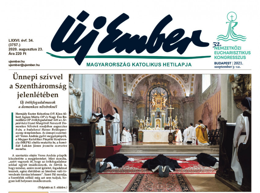 Ünnepi szívvel a Szentháromság jelenlétében címmel olvashatják vezető cikkünket arról, hogy Hernády Eszter Krisztina OP, Kiss-Albert Ágnes Márta OP és Nagy Éva Benedikta OP örökfogadalmat tett az Árpád-házi Szent Margitról Nevezett Domonkos Nővérek rendjében augusztus 8-án a budakeszi Havas Boldogasszony-templomban. Az ünnepi szentmisét Veres András győri megyéspüspök, a Magyar Katolikus Püspöki Konferencia (MKPK) elnöke mutatta be, a homíliát Lukács János jezsuita szerzetes mondta.