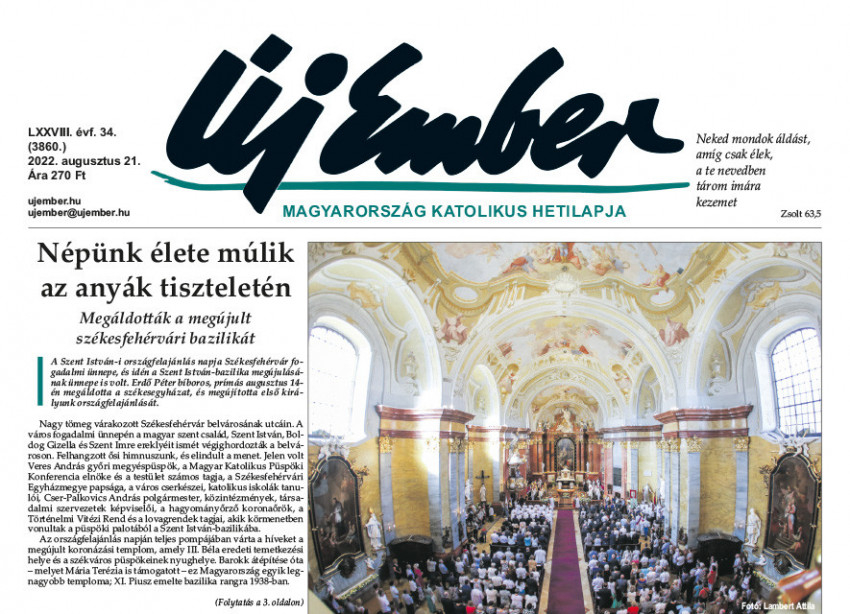 Nagy tömeg várakozott Székesfehérvár belvárosának utcáin. A város fogadalmi ünnepén a magyar szent család, Szent István, Boldog Gizella és Szent Imre ereklyéit ismét végighordozták a belvároson. Felhangzott ősi himnuszunk, és elindult a menet. – A Szent István-i országfelajánlás napja Székesfehérvár fogadalmi ünnepe, és idén a Szent István-bazilika megújulásának ünnepe is volt. Erdő Péter bíboros, prímás augusztus 14-én megáldotta a székesegyházat és megújította első királyunk országfelajánlását. Az ünnepről az Új Ember vezető cikkében olvashatnak.