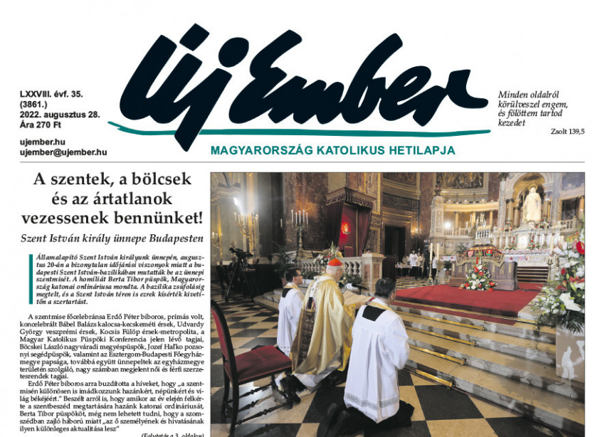 Államalapító Szent István királyunk ünnepén, augusztus 20-án a bizonytalan időjárási viszonyok miatt a budapesti Szent István-bazilikában mutatták be az ünnepi szentmisét. A homíliát Berta Tibor püspök, Magyarország katonai ordináriusa mondta. A bazilika teljesen megtelt és a Szent István téren is ezrek kísérték kivetítőn a szertartást. Beszámolónkat a 3. oldalon találják.