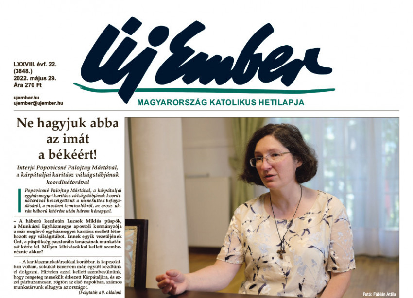 A címoldalon kezdődik interjúnk Popovicsné Palojtay Mártával, a kárpátaljai karitász válságstábjának koordinátorával a menekültek befogadásáról, örömökről és fájdalmas érzésekről, a kihívásokról, a tennivalókról az orosz–ukrán háború kitörése után három hónappal.