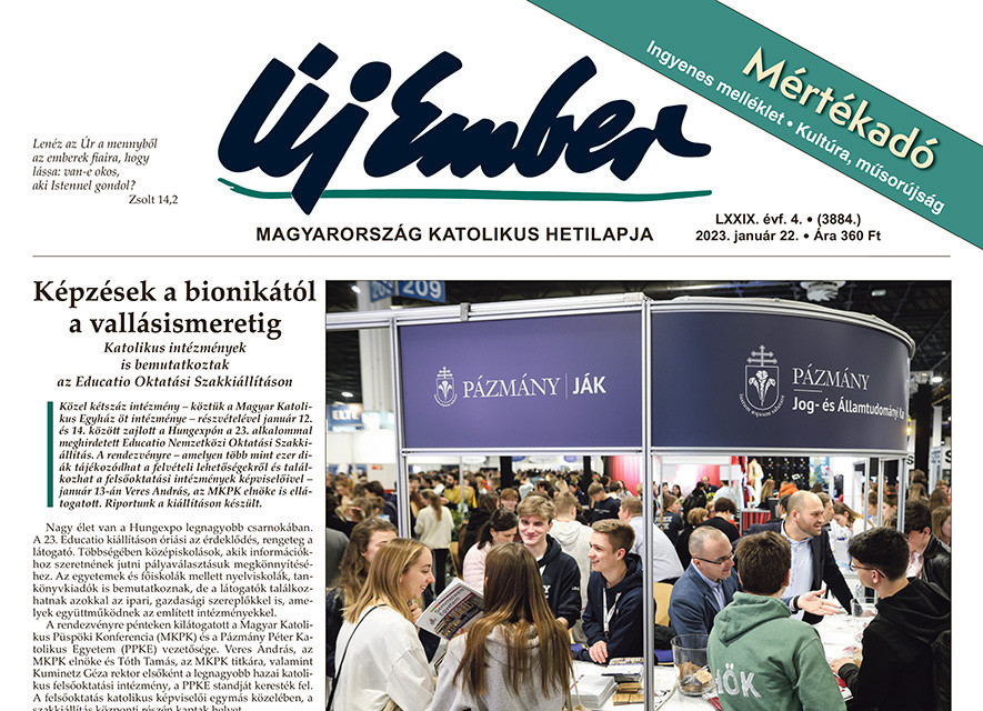Képzések a bionikától a vallásismeretig címmel tudósítunk arról, hogy katolikus intézmények is bemutatkoztak a 23. Educatio Nemzetközi Oktatási Szakkiállításon, amely január 12. és 14. között zajlott a budapesti Hungexpón. A cikkben tájékoztatást adunk több egyházi fenntartású felsőoktatási intézmény képzési kínálatáról.