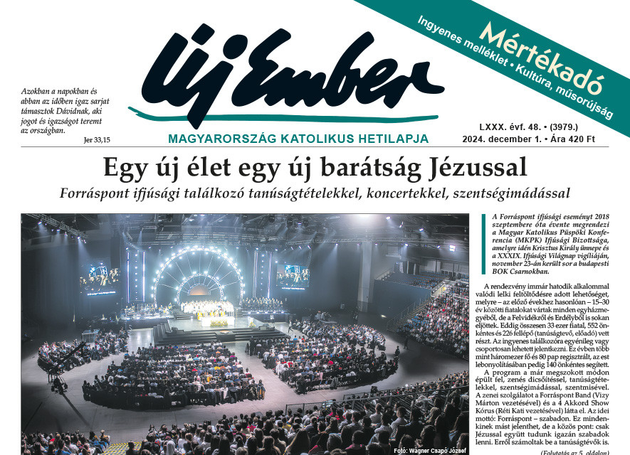 Címoldalon indul riportunk a Forráspont ifjúsági eseményről, amelyet 2018 szeptembere óta évente megrendez a Magyar Katolikus Püspöki Konferencia (MKPK) Ifjúsági Bizottsága. Idén Krisztus Király ünnepe és a XXXIX. Ifjúsági Világnap vigíliáján, november 23-án a budapesti BOK Csarnokban zajlott a Forráspont, amely immár hatodik alkalommal valódi lelki feltöltődésre adott lehetőséget a 15–30 év közötti fiatalok számára, akik minden hazai egyházmegyéből, a Felvidékről és Erdélyből is eljöttek az ország központjába.