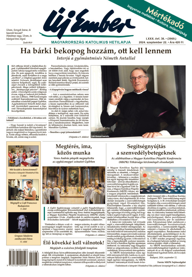 Címoldalon kezdődik tudósításunk arról, hogy Veres András győri megyéspüspök, a Magyar Katolikus Püspöki Konferencia (MKPK) elnöke szeptember 13-án ünnepi szentmisével megnyitotta a Győri Egyházmegye zsinatát a győri Nagyboldogasszony-székesegyház újraszentelésének első évfordulóján. „Emlékezzünk és emlékeztessünk, hogy Krisztushoz tartozunk” – hívott megújulásra a főpásztor. A zsinat sajtótájékoztatóján a püspök hangsúlyozta: „Az a célunk, hogy rátekintsünk a nehézségekre, és együtt gondolkodjunk arról, milyen Egyházat szeretnénk. Meg akarjuk hallgatni egymást, és figyelni a Szentlélekre.”