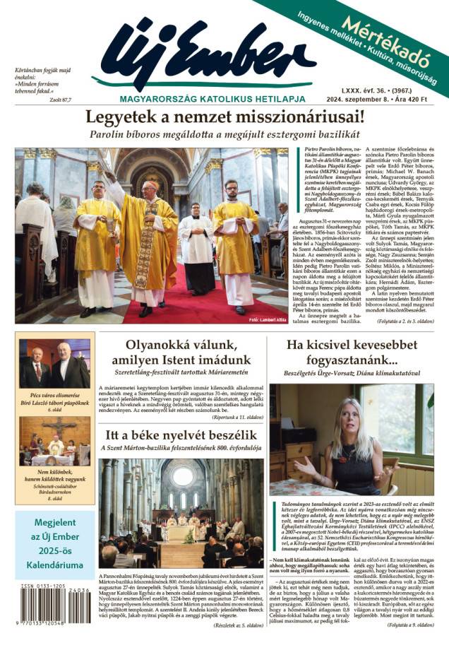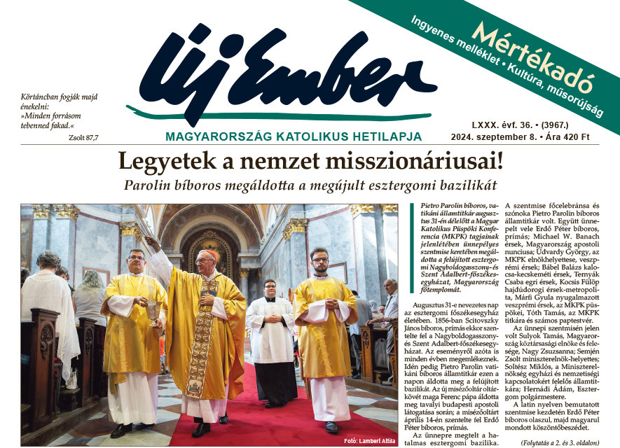 A címlapon keződik részletes tudósításunk arról, hogy Pietro Parolin bíboros, vatikáni államtitkár augusztus 31-én a Magyar Katolikus Püspöki Konferencia (MKPK) tagjainak jelenlétében ünnepélyes szentmise keretében megáldotta a felújított esztergomi Nagyboldogasszony- és Szent Adalbert-főszékesegyházat, Magyarország főtemplomát. A főcelebránssal együtt ünnepelt Erdő Péter bíboros, prímás; Michael W. Banach érsek, Magyarország apostoli nunciusa; Udvardy György, az MKPK elnökhelyettese, veszprémi érsek; Bábel Balázs kalocsa-kecskeméti érsek, Ternyák Csaba egri érsek, Kocsis Fülöp hajdúdorogi érsek-metropolita, Márfi Gyula nyugalmazott veszprémi érsek, az MKPK tagjai, Tóth Tamás, az MKPK titkára és számos paptestvér.
