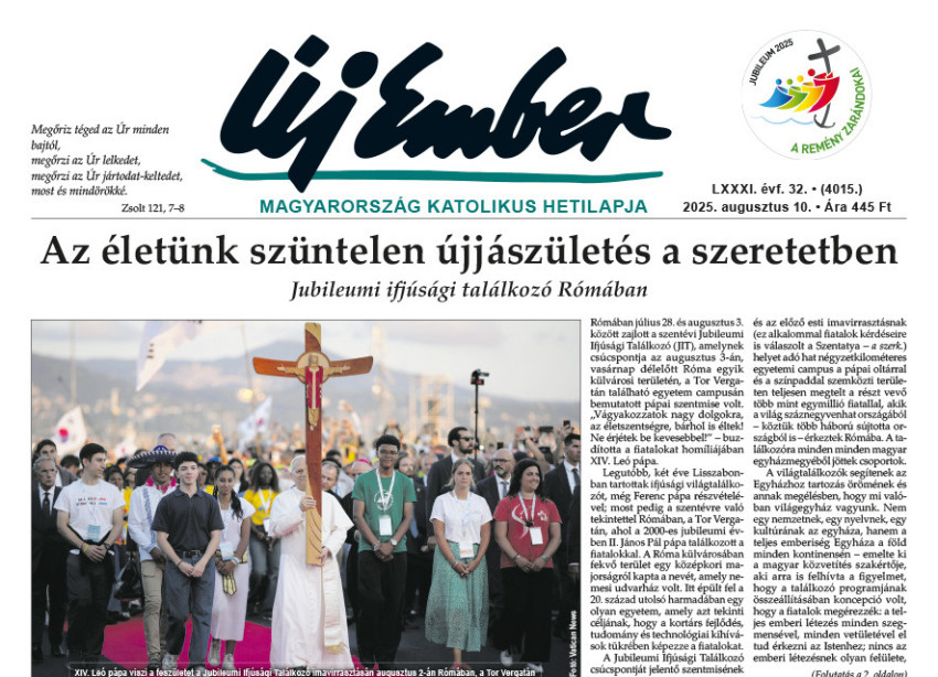 A címlapon adjuk hírül, hogy július 28. és augusztus 3. között Rómában zajlott a szentévi Jubileumi Ifjúsági Találkozó (JIT), amelynek csúcspontja az augusztus 3-án, vasárnap délelőtt Róma egyik külvárosi területén, a Tor Vergatán található egyetem campusán bemutatott pápai szentmise volt. „Vágyakozzatok nagy dolgokra, az életszentségre, bárhol is éltek! Ne érjétek be kevesebbel!” – buzdította a fiatalokat homíliájában XIV. Leó pápa. A találkozón ezerötszáz magyar fiatal is részt vett. A JIT-ről és a magyarok részvételéről lapunk 2. és 3. oldalán olvashatnak beszámolókat és fordításban közöljük a Szentatya beszédét is, amelyet a zárómisén mondott.