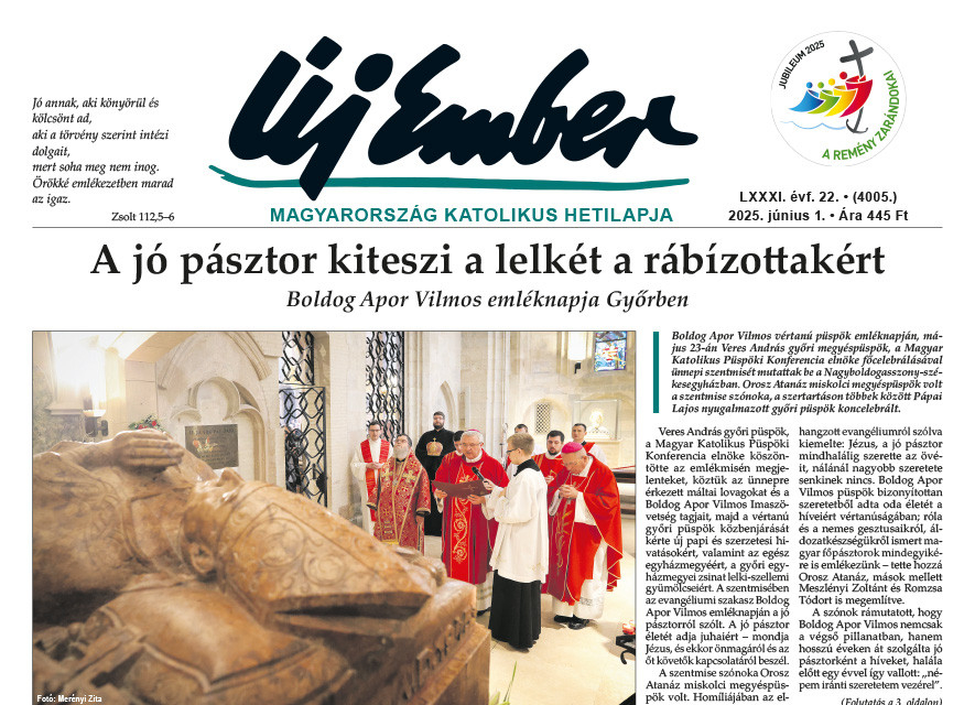 A címlapon kezdődik tudósításunk Győrből, Boldog Apor Vilmos vértanú püspök emlékünnepéről: május 23-án Veres András győri megyéspüspök, a Magyar Katolikus Püspöki Konferencia elnöke főcelebrálásával szentmisét mutattak be a Nagyboldogasszony-székesegyházban a mártír főpásztorra emlékezve. A szentmise szónoka Orosz Atanáz miskolci megyéspüspök volt; a szertartáson többek között Pápai Lajos nyugalmazott győri püspök koncelebrált.