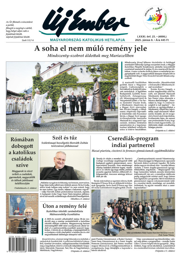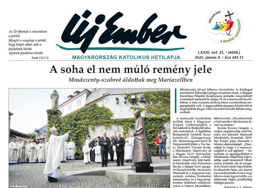 A címlapon kezdődik tudósításunk Mariazellből: az ausztriai kegyhely bazilikájában május 31-én Udvardy György veszprémi érsek, a Magyar Katolikus Püspöki Konferencia alelnöke koncelebrált szentmisét mutatott be Mindszenty József bíboros tiszteletére és boldoggá avatásáért. A mise szónoka Székely János szombathelyi megyéspüspök volt, koncelebrált többek közt Dominik Duka OP nyugalmazott prágai érsek, bíboros; Pedro López Quintana érsek, bécsi apostoli nuncius és Michael Staberl, a mariazelli bazilika elöljárója. A nagyszabású ünnepen leleplezték és megáldották Rieger Tibor bronzból készült, a mariazelli templom mellett felállított Mindszenty-szobrát .