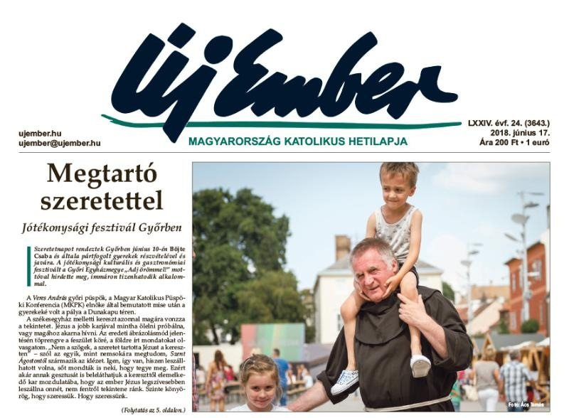 A címlapról indul riportunk a győri Szeretetnapról. A jótékonysági fesztivált Böjte Csaba ferences szerzetes és általa pártfogolt gyerekek részvételével és javára rendezték meg immár tizenhatodik alkalommal, „Adj örömmel!” mottóval.