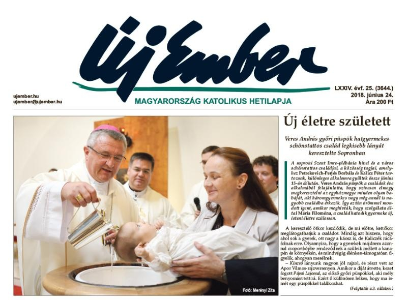 A címoldalon riportot olvashatnak egy különleges keresztelőről. Veres András győri püspök, a Magyar Katolikus Püspöki Konferencia elnöke a családok éve alkalmából felajánlotta, hogy szívesen elmegy megkeresztelni az egyházmegye minden olyan babáját, aki háromgyermekes vagy még annál is nagyobb családba érkezik. Így aztán örömmel mondott igent, amikor meghívták, hogy szolgálata által Mária Filoména, egy soproni schönstattos házaspár hatodik gyermeke új, isteni életre szülessen.