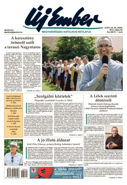 A címlapon hírt adunk arról, hogy görögkatolikus szertartás keretében nyíregyházi püspökké szentelték Szocska A. Ábel bazilita szerzetest. Itt kezdődik tudósításunk a tavaszi Nagymarosi ifjúsági találkozóról, amelyen a keresztény öröm volt a téma, és pünkösdi interjút közlünk Dobszay Benedek ferences tartományfőnökkel, a magyarországi Férfi Szerzeteselöljárók Konferenciájának elnökével. Innen indul tudósításunk a tizenkét éve boldoggá avatott Salkaházi Sára vértanú emléknapjának előestéjén, május 10-én Budapesten megtartott szentmiséről, amelyet Erdő Péter bíboros, prímás mutatott be.
