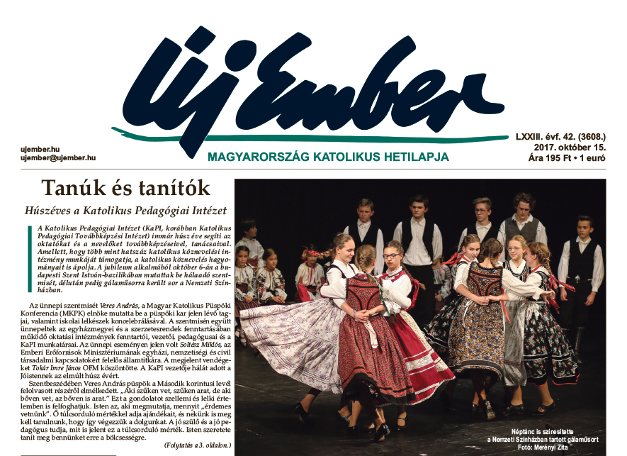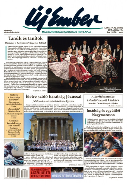 A címlapon a Katolikus Pedagógiai Intézet létrejöttének 20. évfordulója alkalmából megtartott ünnepi szentmiséről és a Nemzeti Színházban megrendezett gálaműsorról számolunk be. Itt kezdődnek cikkeink az őszi Nagymarosi Ifjúsági Találkozóról, a Caritas Hungarica díjak átadásáról és az egri egyházmegyei ministránstalálkozóról. A 2. oldalon Ferenc pápa katekézise mellett beszámolunk a Las Vegas-i merénylet utáni egyházi reakciókról is. A 3. oldalon kapott helyet a Caritas Hungarica díjak átadásáról szóló beszámoló.