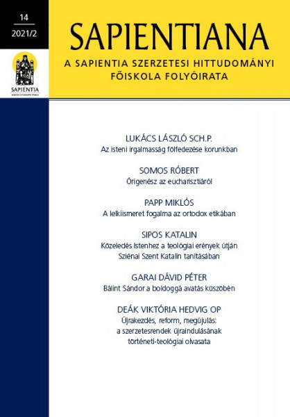 A Sapientia Főiskola Sapientiana című folyóiratának legfrissebb, 2021/2. lapszámában Lukács László Az isteni irgalmasság fölfedezése korunkban, Somos Róbert Órigenész az eucharisztiáról, Papp Miklós A lelkiismeret fogalma az ortodox etikában, Sipos Katalin Közeledés Istenhez a teológiai erények útján Sziénai Szent Katalin tanításában, valamint Garai Dávid Péter Bálint Sándor a boldoggá avatás küszöbén című tanulmányát olvashatják.