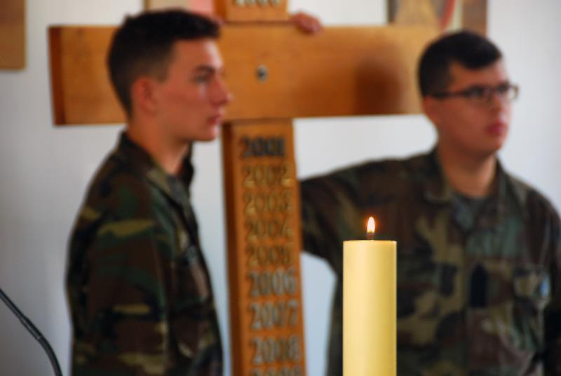A szentmisét követően a magyar zarándokok a hagyományokhoz híven gyertyát gyújtottak a Magyar Honvédség katonáiért.
