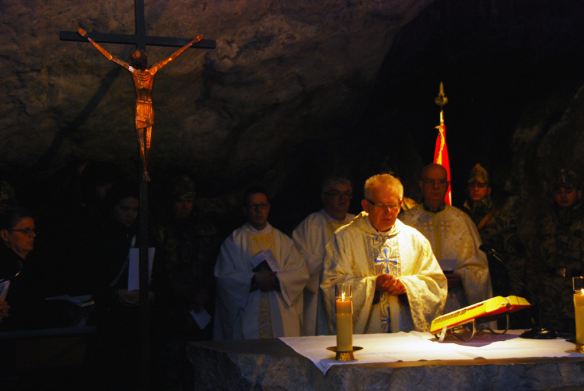 A magyar zarándokok kora reggel magyar nyelvű szentmisén vettek részt a lourdes-i szentélyek területén található jelenések barlangjában.