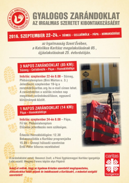 A zarándokok szeptember 24-én, szombaton Celldömölkön és Pápán áthaladva érkeznek Homokbödögére, ahol családi Karitász-nap keretében Erdő Péter bíborossal és több száz önkéntessel szentmisében adnak hálát a Katolikus Karitász megalakulásáért, a 85 év önkénteseiért, adományozóiért és támogatóiért. A szentmise végén megáldják a templom falán elhelyezett új emléktáblát a szervezet alapítója, Mihalovics Zsigmond tiszteletére.