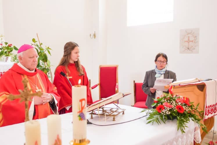 A szentmisét Tamás József nyugalmazott püspök, a közösség régi barátja celebrálta, aki homíliájában a Szentlélek kegyelmi ajándékaira irányította a figyelmet, majd arra bátorította a fogadalmat tevőket (és minden jelenlévőt), hogy ezen ajándékok használatával teremjék a tisztaság, a frissesség, az üdeség, a jó érdekében vállalt úttörés üdvösséges gyümölcseit, teremtsenek békét, aranyozzák be környezetük életét.