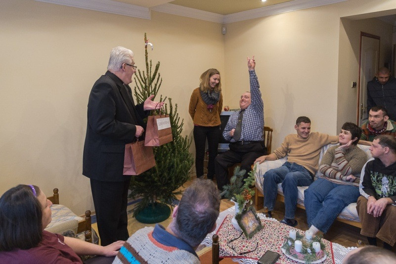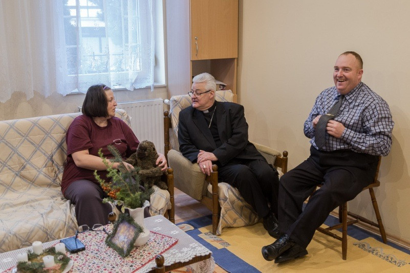A Szent Kristóf Ház lakóotthonában valódi meglepetés volt az ajándék, melyet Spányi Antal személyesen vitt el a gondozottaknak. A meghitt, családias hangulatú látogatáson a sajátos érzékenységgel rendelkező lakók szeretettel és barátsággal fogadták a főpásztort. A rögtönzött bensőséges ünnepségen a gondozottak örömmel osztották meg gondolataikat a megyéspüspökkel, valamint karácsonyi verseket és énekeket adtak elő.