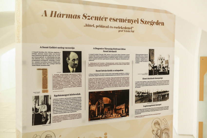 1938 annus mirabilis volt: a 34. Nemzetközi Eucharisztikus Kongresszus éve, valamint Szent István halála és országfelajánlása, vagyis a Regnum Marianum kilencszázadik évfordulója. A Szeged-Csanádi Egyházmegyében Glattfelder Gyula püspök, Apor Vilmos gyulai apát-plébános és Lindenberger János apostoli kormányzó mindent megtettek azért, hogy Szeged városában és a püspökség területén, valamint a csonka Váradi Egyházmegye területén élő hívek felemelt szívvel készüljenek és ünnepeljenek. Ennek a készületnek és ünnepnek állít emléket a Szegeden újonnan nyílt kiállítás.