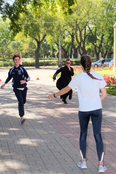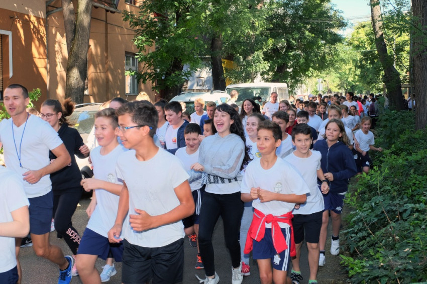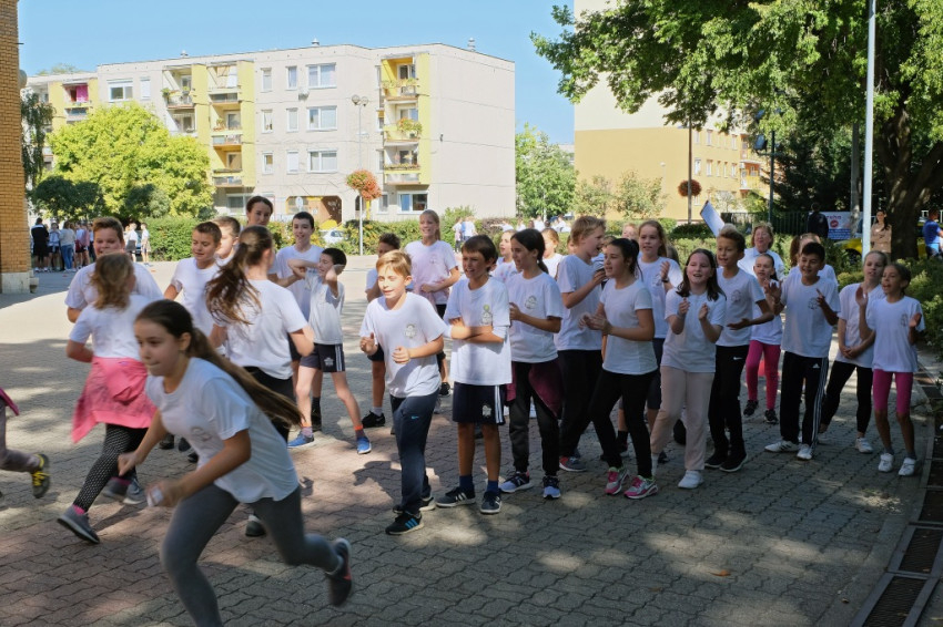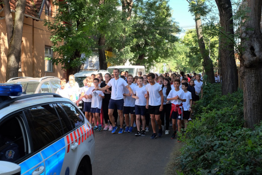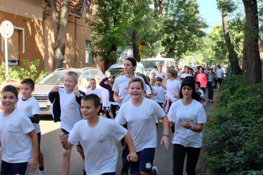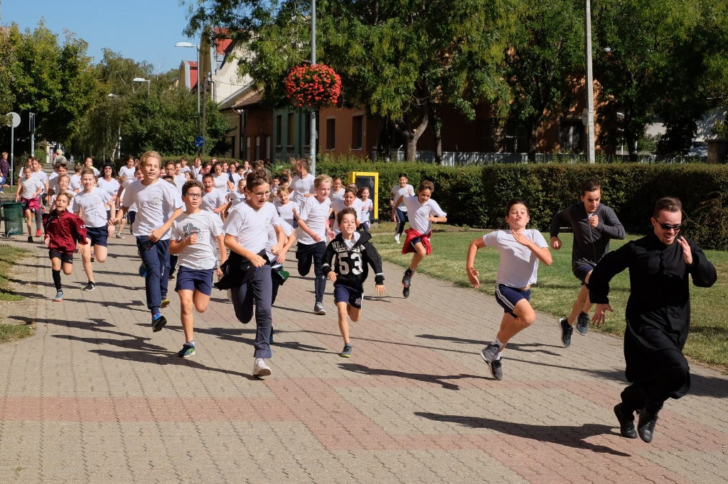Rendőri felvezetéssel, egységes fehér pólóban indultak el a diákok a 2018 méteres futásra. Tóth Imre József atya, a Nagyboldogasszony-főplébánia káplánja reverendában teljesítette a távot, egyenesen a rendezvény helyszínére, a Templom térre vezetve a futó diákokat és pedagógusokat.