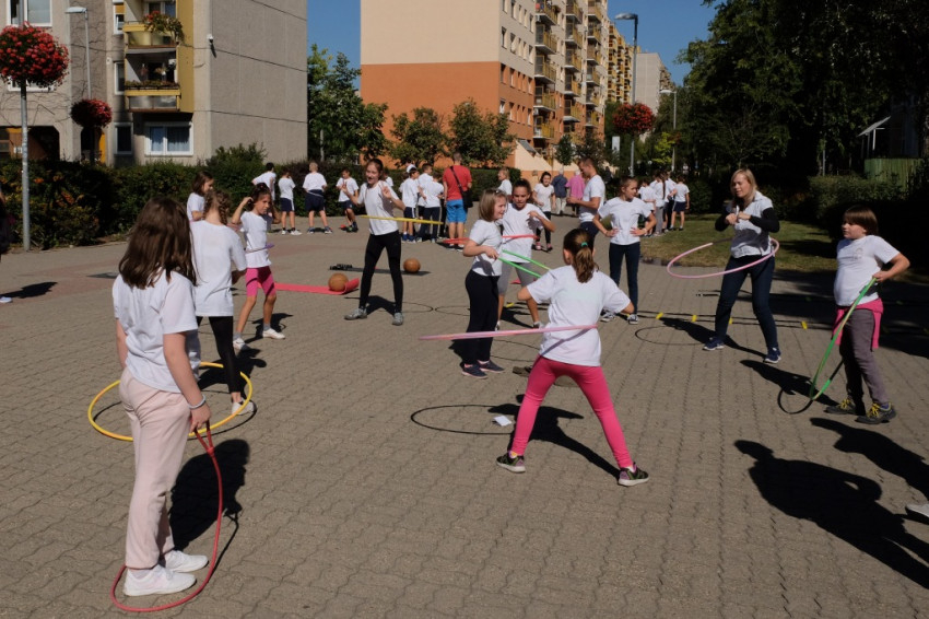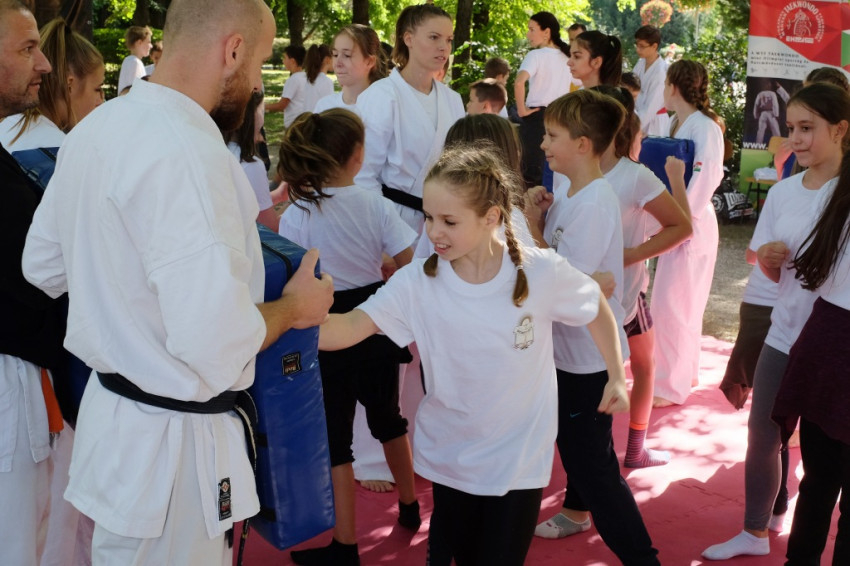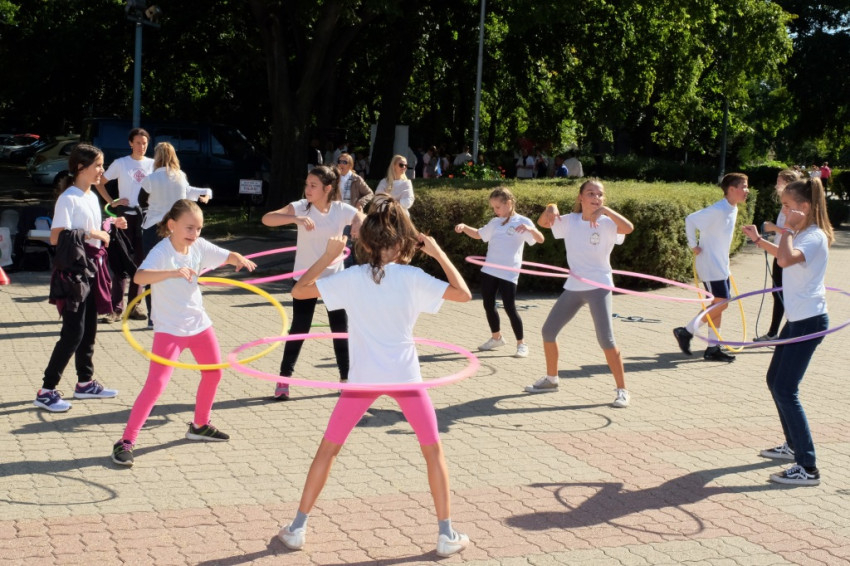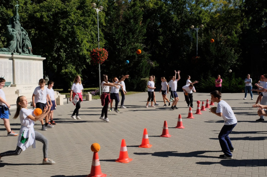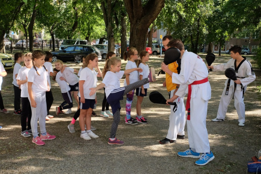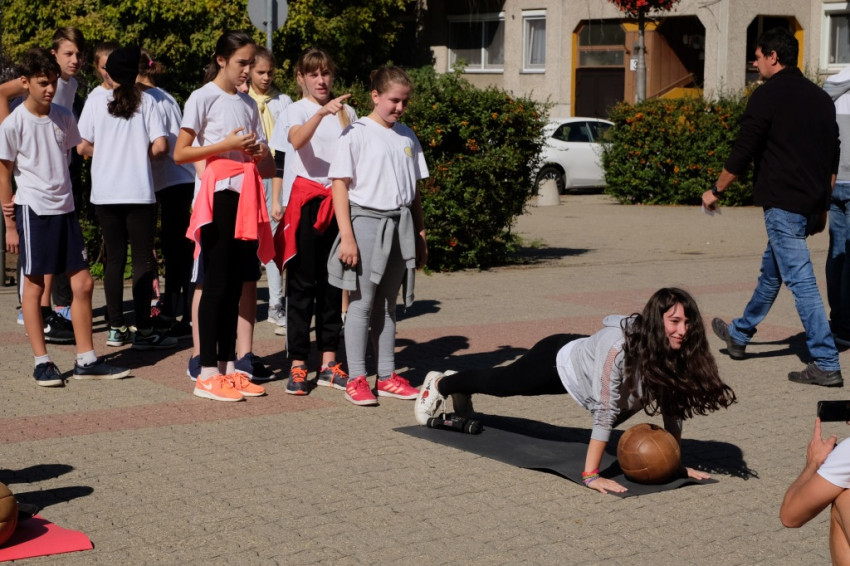 A helyszínen a Nagyboldogasszony-templom körül aztán különféle állomások fogadták a résztvevőket, ahol a többségében helyi sportegyesületek szakembereinek a bevonásával röplabdáztak, kézilabdáztak, fociztak, rollereztek, kötelet húztak, ugrálóköteleztek, karikáztak, karatéztak, teakwondóztak, tollaslabdáztak, de a funkcionális edzés alapjaival is megismerkedtek. A két órányi mozgás kiváló eszköz volt a találkozás kultúrájának támogatására, hiszen útközben többen megálltak, elismerésüket fejezték ki, vagy csak egyszerűen jó érzéssel töltötte el őket a napsütéses időben a templom körül ügyességüket fejlesztő, egymással a fairplay szellemében versengő fiatalok derűje.