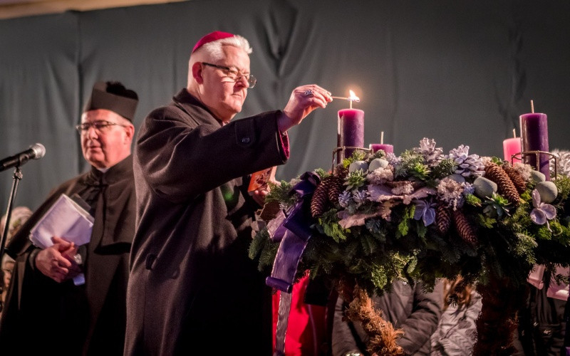 A főpásztor beszédében figyelmeztetett: könnyű eltévedni, elveszíteni az arányokat, amikor a boltok a vásárlásra csábítanak, és a háziasszonyoknak megsokszorozódik a munkájuk, de nem szabad elveszítenünk, ami advent lényege.