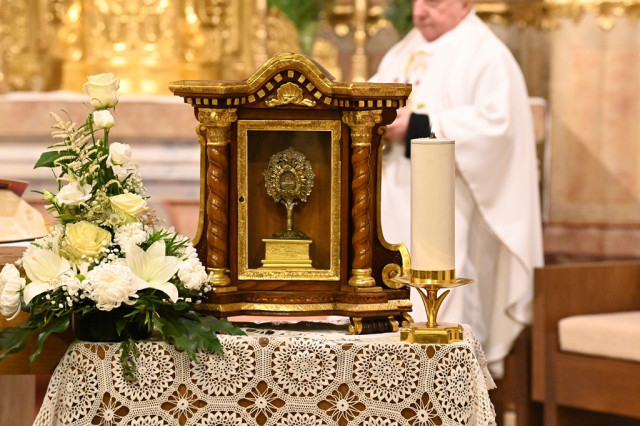 A szentmise áldása után a hívek átvonultak a látogatóközpontba. A Szent Márton-templom a középkorban a város plébániatemploma volt, amely a 16. század végére nagyon rossz állapotba került. Újkori története a domonkosokhoz kötődik. Ferrari Zsigmond domonkos szerzetes szervező munkája nyomán a domonkosok – a provincia 1611. évi megszűnése után – Magyarországon elsőként 1638. április 4-én, húsvét vasárnap telepedtek le újra Szentmárton községben.